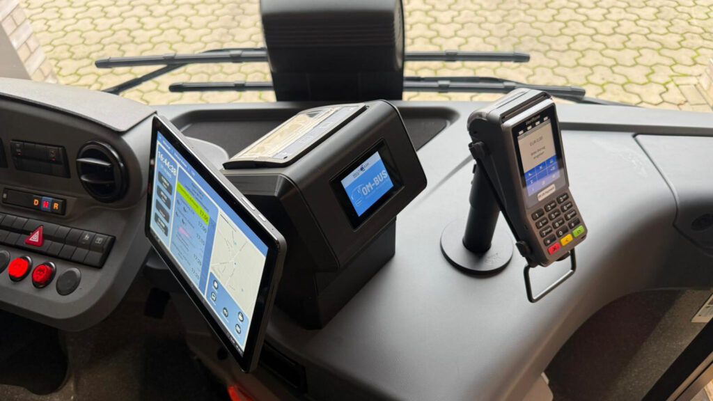 Ein leistungsstarkes Android-System sorgt für intuitive Bedienung, während der integrierte Thermodrucker Fahrscheine direkt vor Ort ausgibt. Das Zahlungsterminal ermöglicht bargeldlose Zahlungen.